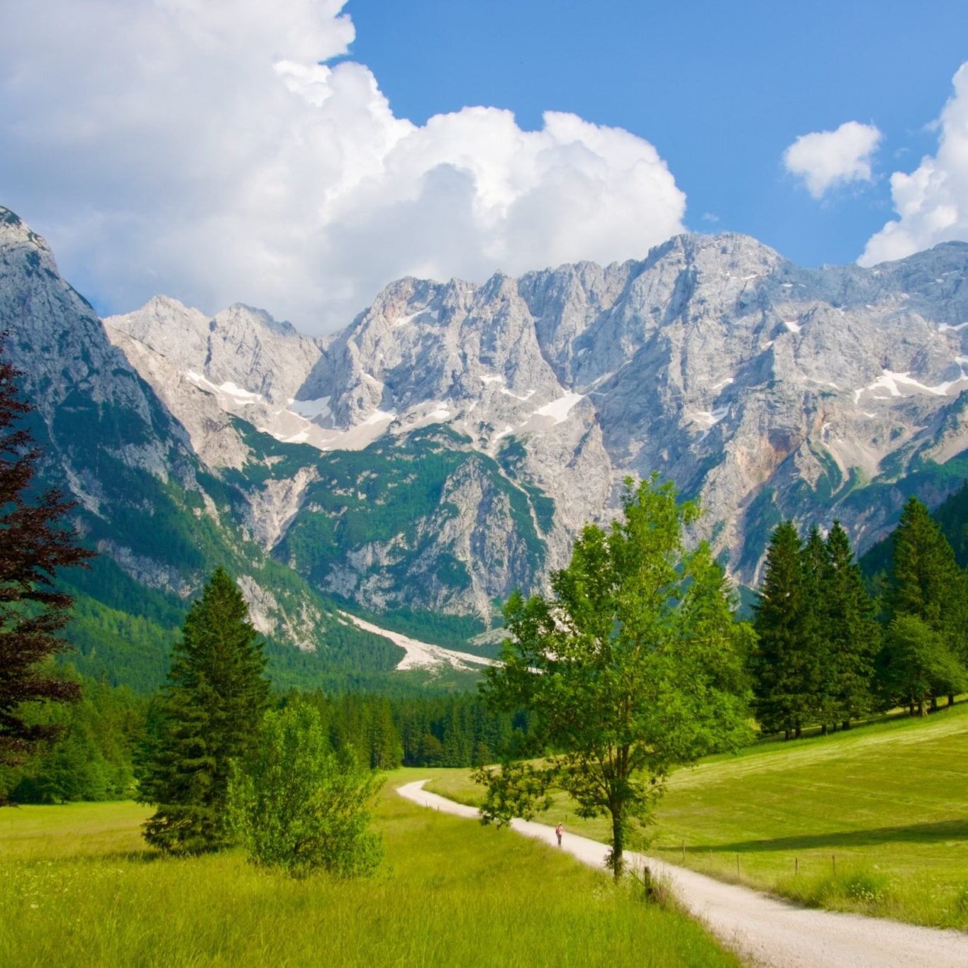 The journey shifts east into one of Slovenia’s quietest corners: Jezersko. Limestone walls rise above green meadows, and the valley feels untouched—a world of hayracks, reflections, and clean alpine air. A gentle afternoon walk introduces the valley at an unhurried, peaceful pace.